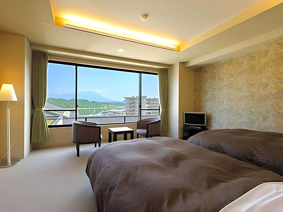 Features a lake view, tatami (woven-straw) flooring and traditional futon bedding.